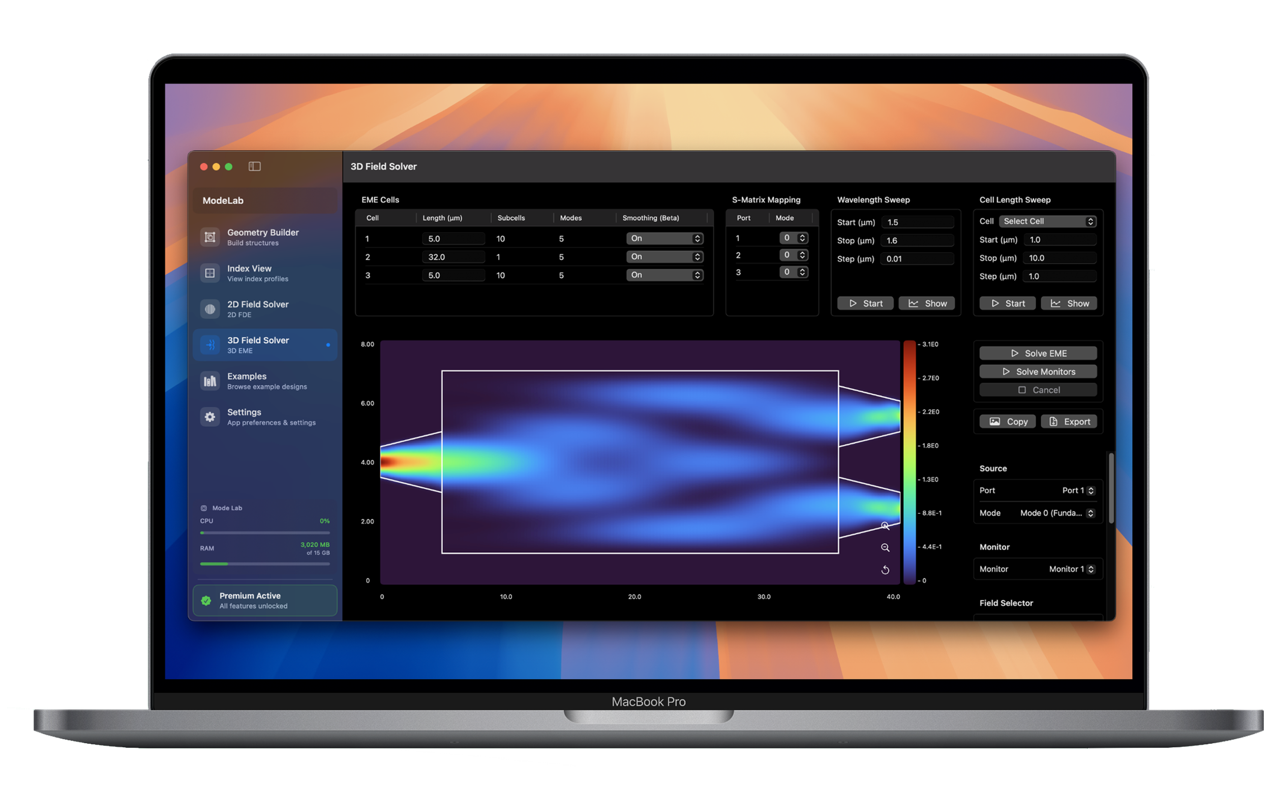Photonic simulation tools for Mac, featuring both Eigenmode Expansion (EME) and Finite Difference Eigenmode (FDE) solvers.